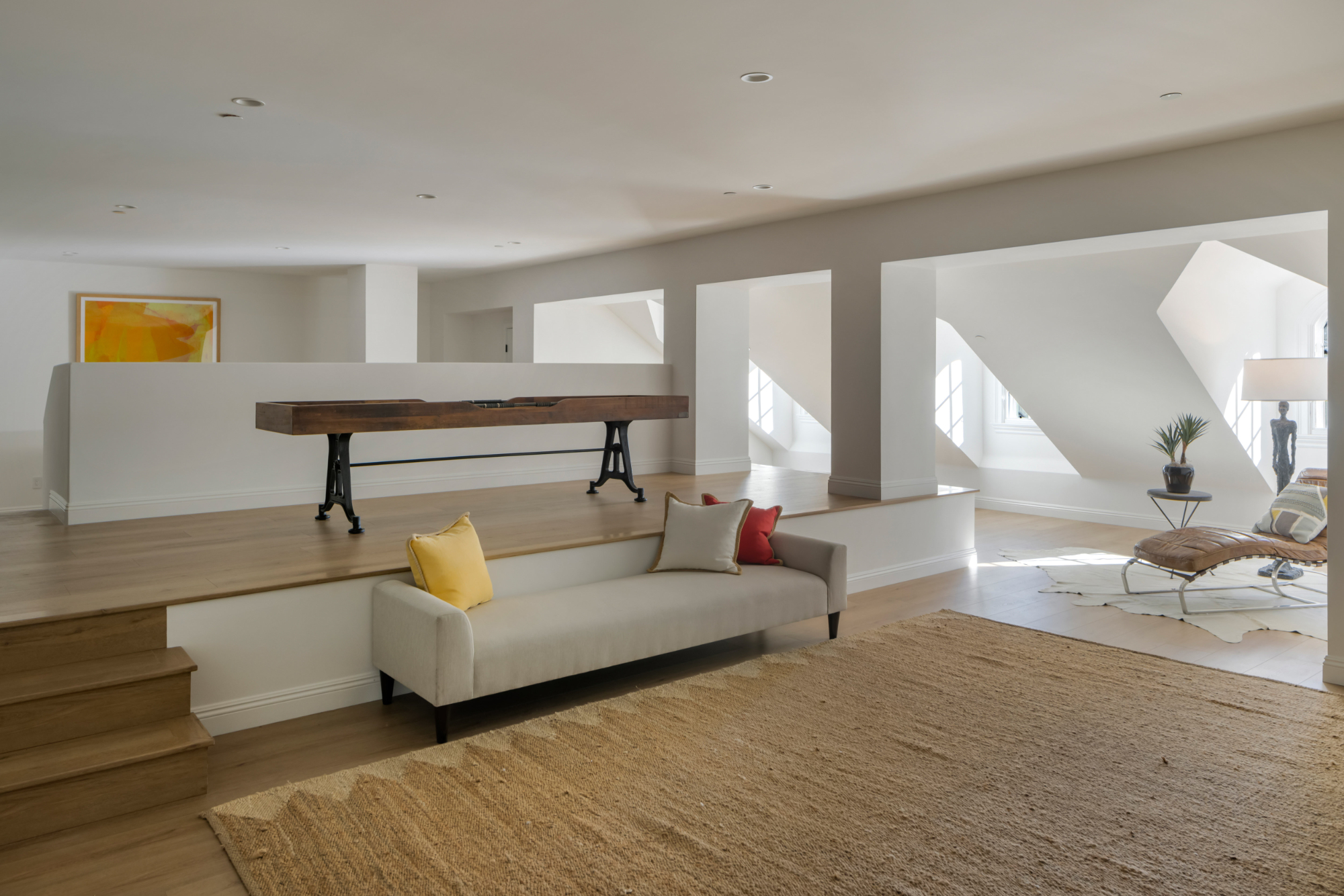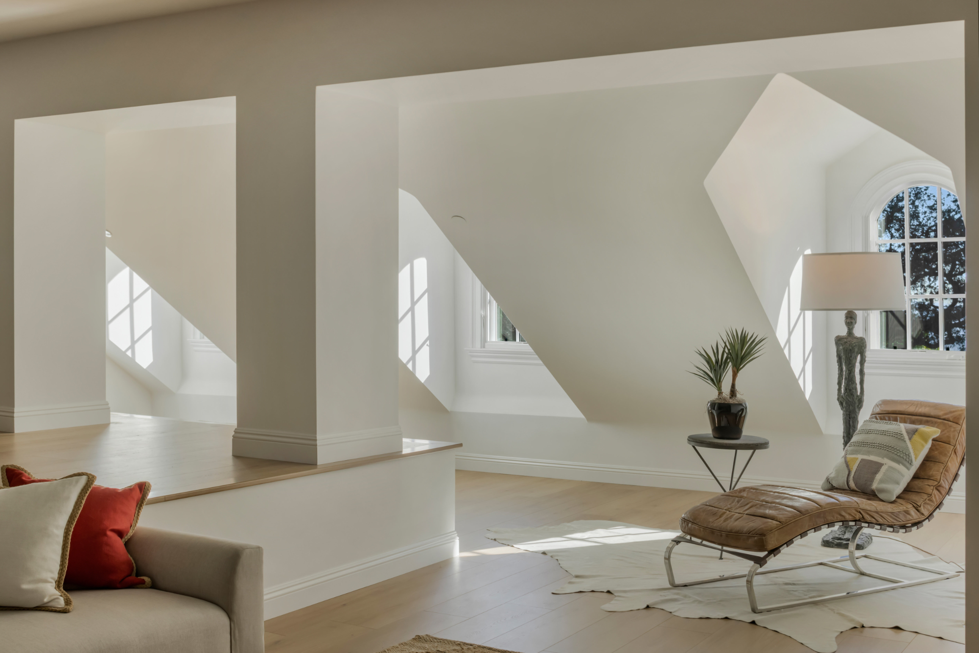 The residence features four en-suite bedrooms and six bathrooms within the main home, all finished with quiet sophistication and careful attention to detail. The primary suite is intentionally designed as a private sanctuary, complete with a separate sitting retreat and a spa-inspired bath featuring a steam shower and integrated light therapy.